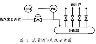 渦街流量計(jì)與調(diào)節(jié)閥(減壓閥)安裝設(shè)計(jì)在同一根管道上,兩者經(jīng)常容易碰到。如圖1所示,來自鍋爐房或熱力公司的外來蒸汽,在測量流量后經(jīng)穩(wěn)壓閥(或減壓閥),進(jìn)入分配器,供各用汽設(shè)備使用。在流量調(diào)節(jié)系統(tǒng)中,流量計(jì)與調(diào)節(jié)閥直接連接,如圖2所示。