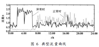 該系統(tǒng)投運(yùn)后的*初幾年,運(yùn)行一直良好。白天和上半夜,洗衣房開工,蒸汽流量在1.0~2.5t/h之間波動(dòng);后半夜收工后,流量減為0.2t/h左右。但在2007年1月的一次停車小修之后,情況發(fā)生了變化。其中,開工期間的流量變化范圍并無異樣,而停工期間的流量示值卻大幅度升高,甚至比開工期間的*大流量還要大。因此,有關(guān)人員特地在收工期間進(jìn)行檢查。典型流量曲線如圖6所示。