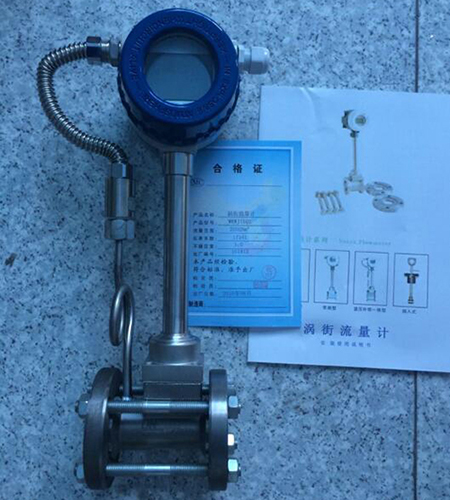 在流體管道中,垂直插入—個(gè)柱形阻擋物,在其后部(相對(duì)于流體流向)兩側(cè)就會(huì)交替地產(chǎn)生旋渦。隨著流體向下游流動(dòng)形成旋渦列,我們稱(chēng)之為卡門(mén)渦街。我們把產(chǎn)生旋渦的柱形阻擋物定義為旋渦發(fā)生體在一定條件下旋渦的分離頻率與流體的流速成線性關(guān)系。因而,只要檢測(cè)出旋渦分離的頻率,即可計(jì)算出管道內(nèi)流體的流速或流量。
