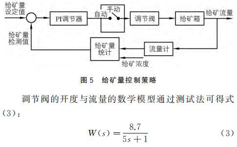 以式(3)為基礎(chǔ),對給礦量進(jìn)行 PI調(diào)節(jié),實(shí)時控制調(diào)節(jié)閥的開度,并對給礦量進(jìn)行精確控制。