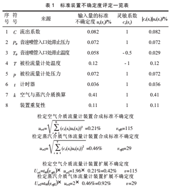 蒸汽流量計用氣體流量標(biāo)準(zhǔn)裝置不確定度評定