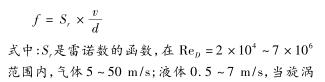 發(fā)生體的形狀和尺寸一定時,S r 可視為常數(shù),渦街頻率與體積流量成比例關系,不受流體物理性質(zhì)和組份變化的影響。