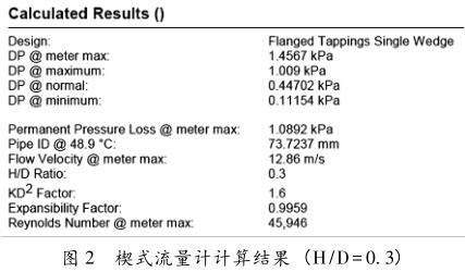 (4)根據(jù)工藝要求及現(xiàn)場安裝環(huán)境選擇耐壓、耐溫等級、防護等級、防爆等級、輸出信號等。3測量熱解氣的渦街流量計的選型設計熱解氣的組分如表1所述,其工藝參數(shù):操作密度0.63kg/m3,運動粘度2×10-5m2/s,操作溫度48.9℃,操作壓力7.5kPa,管道DN80,*小流量50Nm3/h,正常流量100Nm3/h,*大流量150Nm3/h,儀表測量范圍選擇0~180Nm3/h。因為本裝置為試驗裝置,在裝置運行的過程中,業(yè)主可能會根據(jù)需要適當調(diào)整參數(shù),因此選擇量程比寬一些的流量計會有助于調(diào)整后的測量;另外熱解氣作為產(chǎn)品之一,其流量是驗證工藝與關鍵設備的工程可行性、優(yōu)化工藝參數(shù)的關鍵參數(shù)之一,因此使用精度高一些的流量計也是有必要的;熱解氣的組分隨著參數(shù)的調(diào)整也可能會發(fā)生變化,因此基于伯努利方程原理的,如孔板、噴嘴、阿牛巴、德爾塔巴、平衡式等都不能很好的測量,因為這類流量計受流體物性(密度、粘度)和組分變化影響,且*終的熱解氣產(chǎn)品或多或少都有焦油的存在,時間長了可能堵塞流量計。楔式流量計帶自清潔的功能,如果采用法蘭取壓,變送器采用隔膜密封式變送器,其受焦油的影響較小,楔式流量計的計算結(jié)果分別見圖1和圖2。