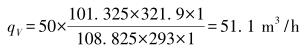 式中,qV、qn分別為工作狀態(tài)和標準狀態(tài)下的體積流量,m3/h;P、Pn分別為工作狀態(tài)和標準狀態(tài)下的絕對壓力,Pa;T、Tn分別為工作狀態(tài)和標準狀態(tài)下的熱力學溫度,K。