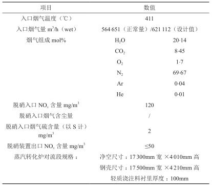 脫硝裝置入口煙氣參數(shù)見表1。