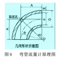 (2)彎管流量計(jì):彎管流量計(jì)實(shí)際上是一個(gè)90度標(biāo)準(zhǔn)彎頭(如圖6),沒有比它結(jié)構(gòu)更簡(jiǎn)單的流量傳感器了。隨著機(jī)械加工工業(yè)的發(fā)展和行業(yè)標(biāo)準(zhǔn)化及規(guī)范化管理不斷完善,彎管傳感器的標(biāo)準(zhǔn)機(jī)制彎頭性價(jià)比越來越高,它的特點(diǎn)是結(jié)構(gòu)簡(jiǎn)單價(jià)格低廉;彎管流量計(jì)傳感器耐磨損,對(duì)微量磨損不敏感;安裝簡(jiǎn)單可采用直接焊接法進(jìn)行安裝,現(xiàn)場(chǎng)跑冒滴漏問題得到徹底的解決;適應(yīng)性強(qiáng);量程范圍寬;直管段要求不嚴(yán),只要是可以用孔板渦街均速管流量計(jì)來測(cè)量的管道內(nèi)流體流量都可以用彎管流量計(jì)進(jìn)行測(cè)量,而且在耐高溫耐高壓耐沖擊耐振動(dòng)耐潮濕耐粉塵等方面彎管流量計(jì)遠(yuǎn)優(yōu)于其它流量計(jì)。彎管流量計(jì)的量程比可達(dá)1:10,對(duì)于蒸汽它的適用范圍為5-70m/s,可以較好地滿足蒸汽流量測(cè)量的要求。彎管流量計(jì)由于其特殊的測(cè)量原理,使其在實(shí)際應(yīng)用時(shí)對(duì)直管段的要求不嚴(yán)格,一般只要求前5D(D為蒸汽管道內(nèi)徑)后2D即可,遠(yuǎn)遠(yuǎn)低于其他流量測(cè)量裝置的要求,彎管流量計(jì)精度高、重現(xiàn)性好,測(cè)量精度可達(dá)1.0%;重現(xiàn)性精度可達(dá)0.2%。一次安裝后不再需要重復(fù)拆裝,因此其安裝精度也能得到*佳保證,彎管流量計(jì)的*突出特點(diǎn)是無任何附加節(jié)流件或插入件,可大大降低流體在管道內(nèi)輸送的動(dòng)力消耗節(jié)約能源。在節(jié)能降耗的背景下,為優(yōu)選流量計(jì)產(chǎn)品。