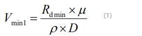 式中:Vmin1--基于雷諾數(shù)限制的工況流速下限,m/s;Rd min--為保證標稱準確度,所需非常小雷諾數(shù);μ--流體在工況下的動力黏度,cP 或 mPa·s;ρ--流體工況密度,kg/m3;D--管道內(nèi)徑,mm。對于黏度高于1cP的液體流量檢測或小于DN40的小口徑規(guī)格的選用,應不可省略雷諾數(shù)下限的核算。