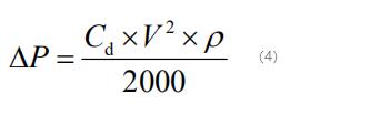 式中:△P--流量計產(chǎn)生的yongjiu壓力損失,kPa;Cd--渦街流量表阻力系數(shù),由其結(jié)構(gòu)決定;V--流體工況流速,通常取非常高流速,m/s;ρ--流體工況密度,kg/m3。