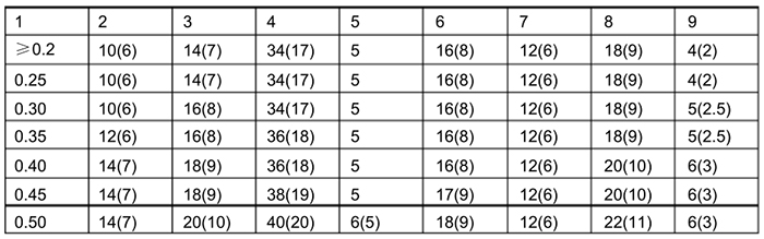 3、 上表括號(hào)外的數(shù)字為“附加相對(duì)*限誤差為零”的數(shù)值,括號(hào)內(nèi)的數(shù)字為“附加相對(duì)*限誤差為±0.5%”的數(shù)值。即直管段長(zhǎng)度中有一個(gè)采用括號(hào)內(nèi)的數(shù)值時(shí), 流量測(cè)量的*限相對(duì)誤差 τ Q/Q。應(yīng)再算術(shù)相加 0.5%亦即( τ Q/Q+0.5)%