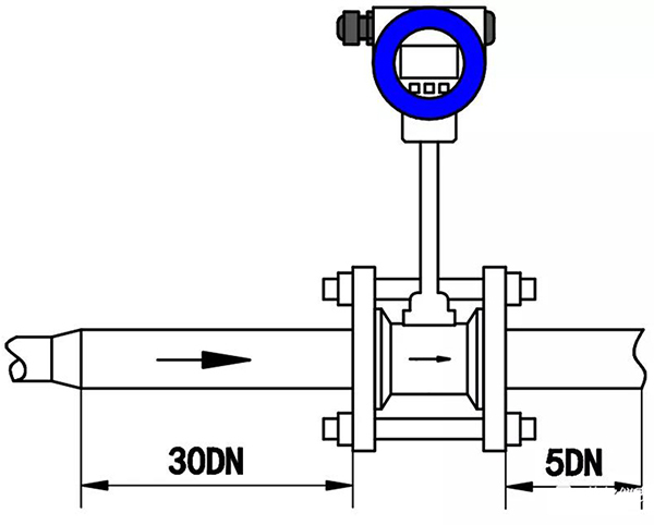 2、調(diào)節(jié)閥盡可能不安裝在渦街流量?jī)x表的上游,而應(yīng)安裝在壓縮空氣流量計(jì)的下游10D處。