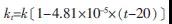 式中:kt——工況條件下的流量系數(shù);k——檢定條件下的流量系數(shù);t——工況溫度。