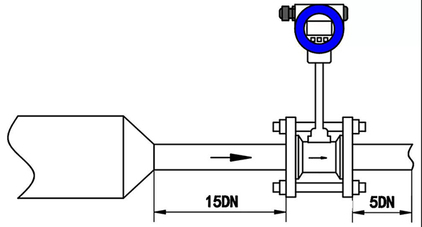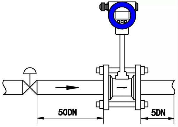 2、調(diào)節(jié)閥盡可能不安裝在液體渦街流量計的上游,而應(yīng)安裝在液體渦街流量計的下游10D處。