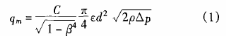 式中:qm為質(zhì)量流量,kg/s;C為流量因數(shù);β為孔板孔徑與管道內(nèi)徑之比,β=d/D;ε為氣體膨脹因數(shù),當(dāng)流體為不可壓縮性流體時ε=1;d為孔板孔徑,m;△p為孔板前后的壓差,Pa;ρ為節(jié)流件入口端流體密度,kg/m³。