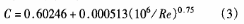 流量因數(shù)C與β和Re的之間的定量關(guān)系為: