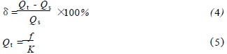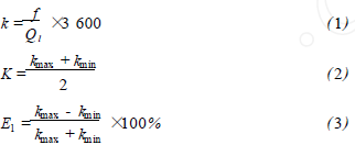 將氫氣流量計在標準水裝置上,分別用頻譜分析和脈沖計數(shù)的方法進行標定,流體介質(zhì)為水未加氣體,采用的標準傳感器為精度等級為0.2級的電磁流量計。在每個流量測量點上的儀表系數(shù)用公式(1)計算,然后用式(2)計算得到*終儀表系數(shù)K。Ql為被測水的流量值,f為每一個流量點得到的頻率,k為每個測量點得到的儀表系數(shù)。kmax、kmin分別為試驗流量范圍內(nèi)得到的*大與*小的儀表系數(shù)。儀表系數(shù)的線性度E1用式(3)來計算。