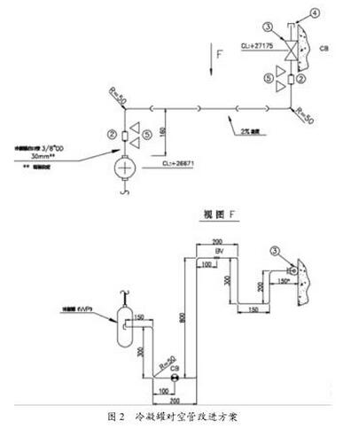 通過工程設(shè)計(jì)人員和運(yùn)行人員的溝通, 提出在冷凝罐對(duì)空管增加截止閥, 用于在檢修期間冷凝罐內(nèi)高溫蒸汽的排出。
