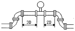 縱端面采用特殊形線的變徑整流器(己申報****),具有整流,提高流速及改變流速分布的多重作用,其結(jié)構(gòu)尺寸小,長度僅為工藝管內(nèi)徑的1/3,可以直接卡裝在儀表的兩端,不僅不需要另外附加直管道,而且可以降低儀表對上游直管道的要求。實驗表明:儀表上游阻力件為一個平面內(nèi)的兩個90°彎頭 在一般情況下,渦街流量表上游側(cè)應(yīng)加裝大于20倍管道內(nèi)徑長度的直管道,而渦街流量表加裝了變徑整流器大大降低了對上游測直管道長度的要求,其阻力遠遠小于傳統(tǒng)的變徑管。更主要的是,可使下限流速降為原來的1/3,量程比提高到15:1以上。