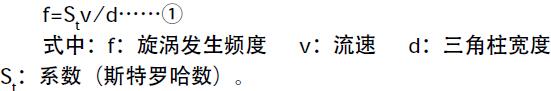 渦街流量計工作原理是應用“卡門渦街”原理和現(xiàn)代電子技術設計制造的一種流量計,當被測流體經三角柱時,在柱的兩側交替產生旋渦,形成“渦街”,該旋渦的發(fā)生頻度與流體的速度成正比,在一定條件下,符合:
