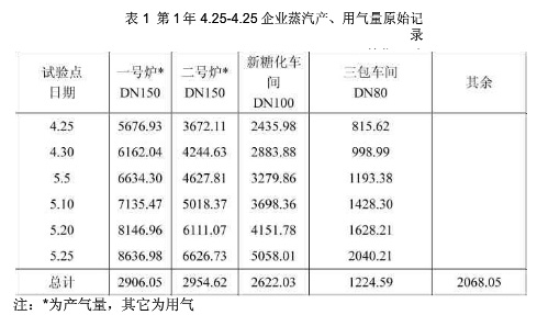 (1)綜上數(shù)據(jù),圖表可看出渦街流量計測量飽和蒸汽,流量數(shù)據(jù)顯示清晰,穩(wěn)定可靠,其產、用氣量隨著流量計的完善,其差值變小了,也即使用部門越多,其消耗越少。